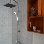 Bathroom amenities comprise a separate toilet and a shower, as well as a hair dryer and bath sheets.